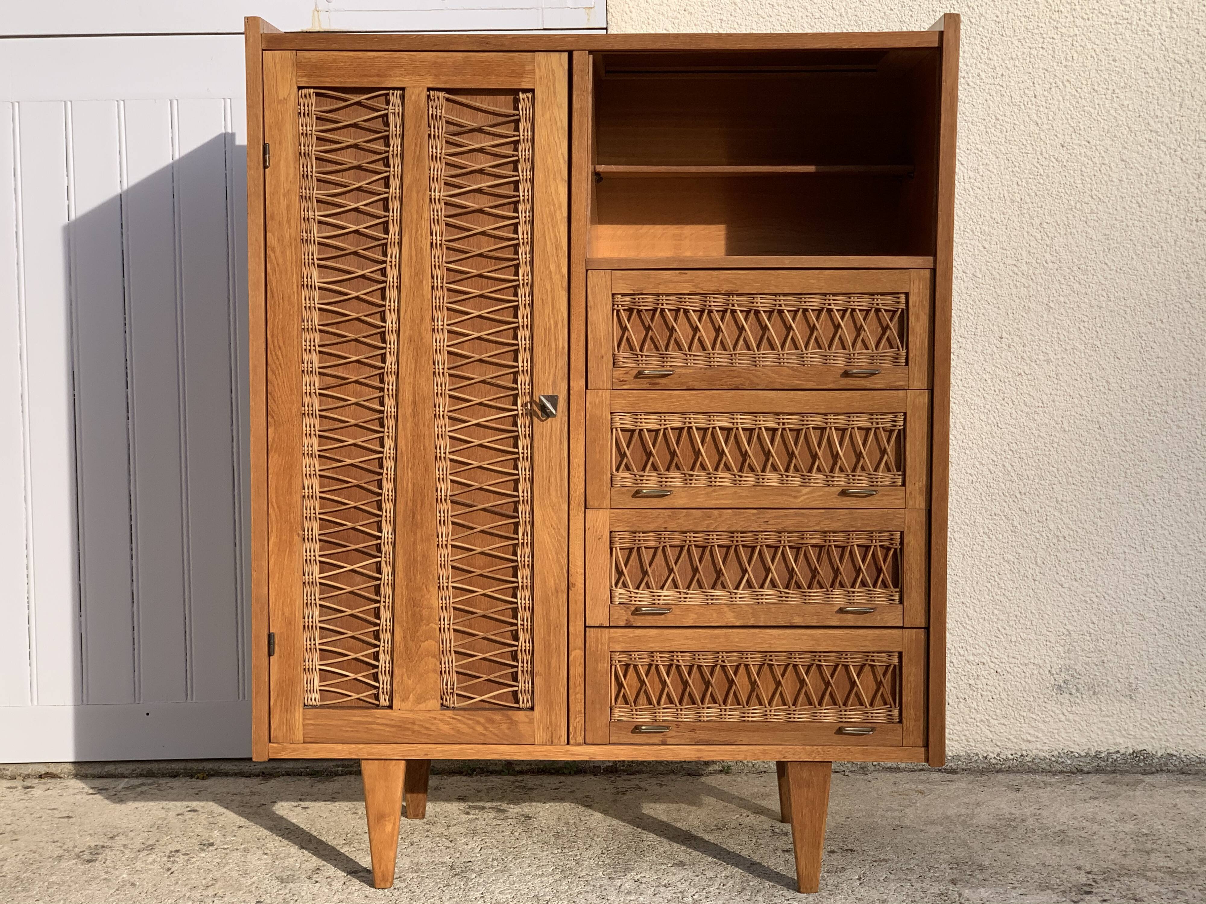 Armoire bois et rotin 1960 Selency